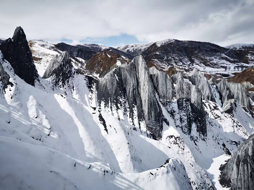 其實,這種巖石不僅出現(xiàn)在道孚縣,沿鮮水河斷裂帶,曾形成過長達(dá)上百公里的糜棱巖帶,但有幸成為石林的,卻唯有墨石公園。