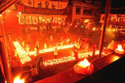 傳說藏歷十月二十五日,是藏傳佛教格魯巴(俗稱黃教)創(chuàng)始人宗喀巴大師圓寂成佛的日子。為了紀(jì)念這位杰出的宗教領(lǐng)袖,藏區(qū)各黃教寺廟和信徒于藏歷十月二十五日,舉行誦經(jīng)、磕頭,燈供儀式等隆重的祭祀活動(dòng),祭祀宗喀巴大師在天之靈和祈愿大師賜與善良的人們以吉祥幸福。