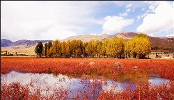 蔚藍蔚藍的天空飄著幾朵淡淡的白云,天空是那么近,仿佛你伸手可觸。一出縣城,你可以看到世界上海拔最高、面積最大的人造青楊林,這兒的海拔是三千七百多米,農(nóng)業(yè)學家認為海拔4000米是不能生長農(nóng)作物的,可是這里照樣是郁郁蔥蔥,到處是風里閃爍的青楊樹,映著灘寬水淺的小河,炊煙裊裊的藏房,潔白豐滿的佛塔,還有色拉村的晨霧,好一派迷人的美景……
