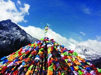旅程的第七天,翻越雀兒山埡口,海拔5050米。因?yàn)樯礁呗冯U(xiǎn),所以已經(jīng)在開鑿隧道,三年后這里的路將會(huì)荒廢,人們也不再從這里經(jīng)過。第一次翻越五千米的高度,心中難免激動(dòng),我跑下車,摸了摸被經(jīng)幡圍繞的紀(jì)念碑。我想人生總有很多第一次,以后還會(huì)第一次翻越六千、七千米。