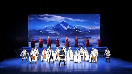 初生的音樂劇《康定情歌》是個聽話謙遜的孩童,專業(yè)人士的諄諄教誨一定會牢記在心;他也是個具有思鄉(xiāng)情結(jié)的游子,自己的一顰一笑都流露出濃郁的民族風(fēng)采;同時他也是個頑強(qiáng)拼搏的逐夢少年,即便汗水和淚水匯成一道道溝壑,依然挺胸不低頭,只為在明天,成為更好的自己。 (圖片由州歌舞團(tuán)提供)