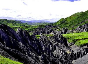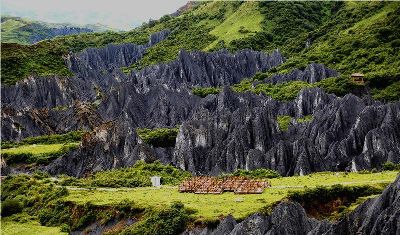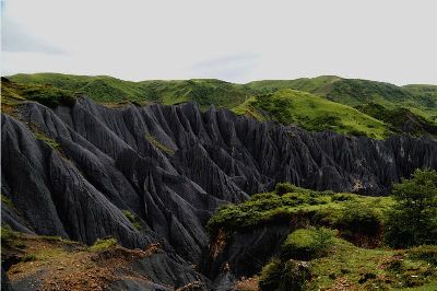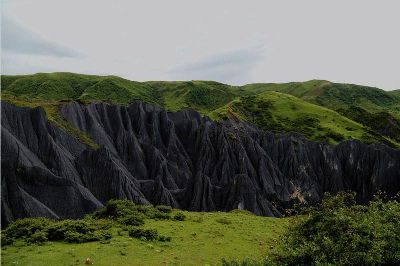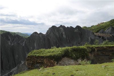 墨石公園,是中國唯一高原石林景觀,被譽為“中國最美景觀大道第八美 ”。受第四紀(jì)新構(gòu)造運動影響,隨著青藏高原的隆起,鮮水河斷裂帶中的巖石受到擠壓、剪切、破碎、糜化,形成糜棱巖石林。石林含丐鹽,受空氣濕度影響,干燥季節(jié)呈淺灰色、淺藍(lán)色,濕潤季節(jié)呈滄黑色,因此又稱之為變色石林。