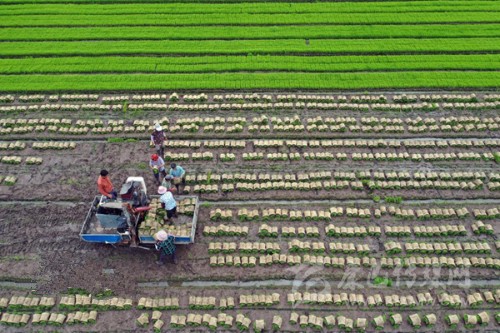 江蘇揚州的農(nóng)村正使用機械起秧。 沈冬兵/人民圖片