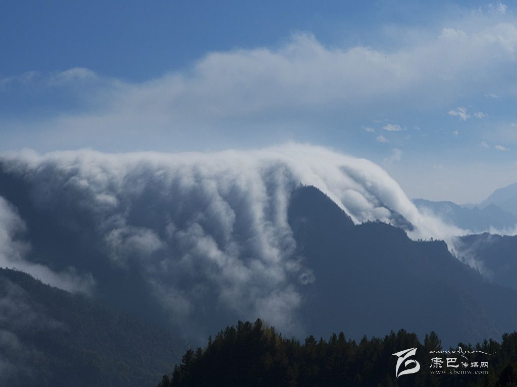 牛背山最為變幻無(wú)窮的,當(dāng)屬云海。從山頂向下望去,四周云海茫茫,時(shí)而舒緩,時(shí)而洶涌,潮起潮落。當(dāng)云海移至深谷處,會(huì)因?yàn)榫薮蟮穆洳疃纬善俨荚?,似飛瀑?gòu)奶於?,氣?shì)磅礴,蔚為壯觀。“寵辱不驚,閑看庭前花開(kāi)花落;去留無(wú)意,漫隨天外云卷云舒”。云卷云舒的景象,大概只有在牛背山才能被演繹得如此淋漓盡致吧。難怪有人這樣描述牛背山:“泥巴山、瓦屋山、峨眉山、夾金山、四姑娘山和二郎山在前, 貢嘎雪山在側(cè), 大渡河大峽谷在后, 幾乎天府之國(guó)的所有名山峻嶺在此時(shí)都變成了玲瓏盆景。而翻滾的云霧之下, 群山丘陵逐級(jí)降低, 緩緩融入稻浪翻滾的天府平原。”