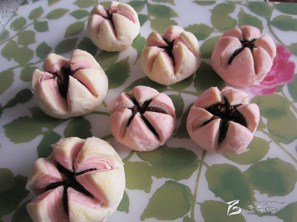 18.用刀在面團(tuán)表面切出花瓣,切口深度到見到椰蓉餡為止。