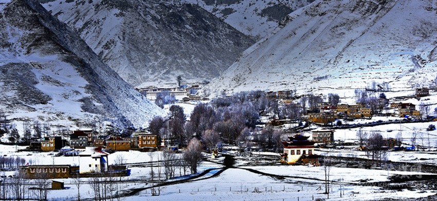 這個(gè)季節(jié)進(jìn)入德格,在途中放眼望去,窗外一片白雪茫茫,雪花覆蓋著道路,覆蓋著印經(jīng)院、新路海,覆蓋著德格的樹木與秋草。