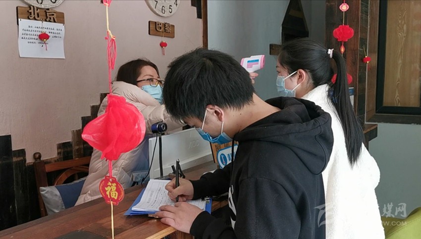游客在填寫(xiě)個(gè)人健康信息。