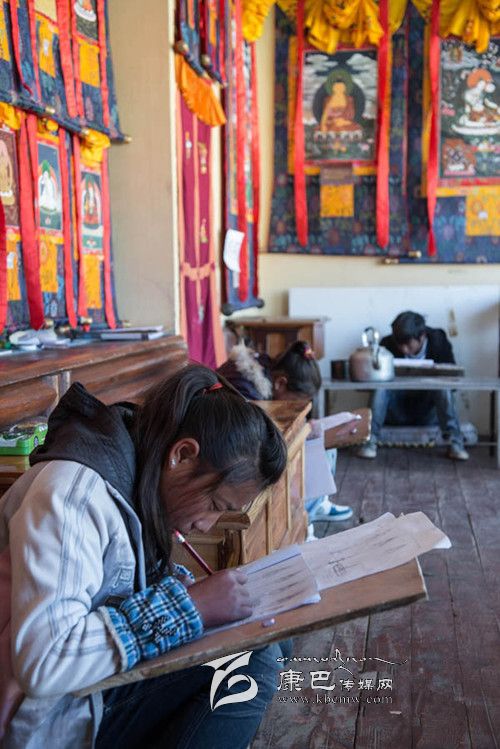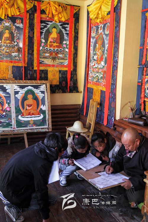 11月11日,幾個孩子在學習唐卡畫基本功。