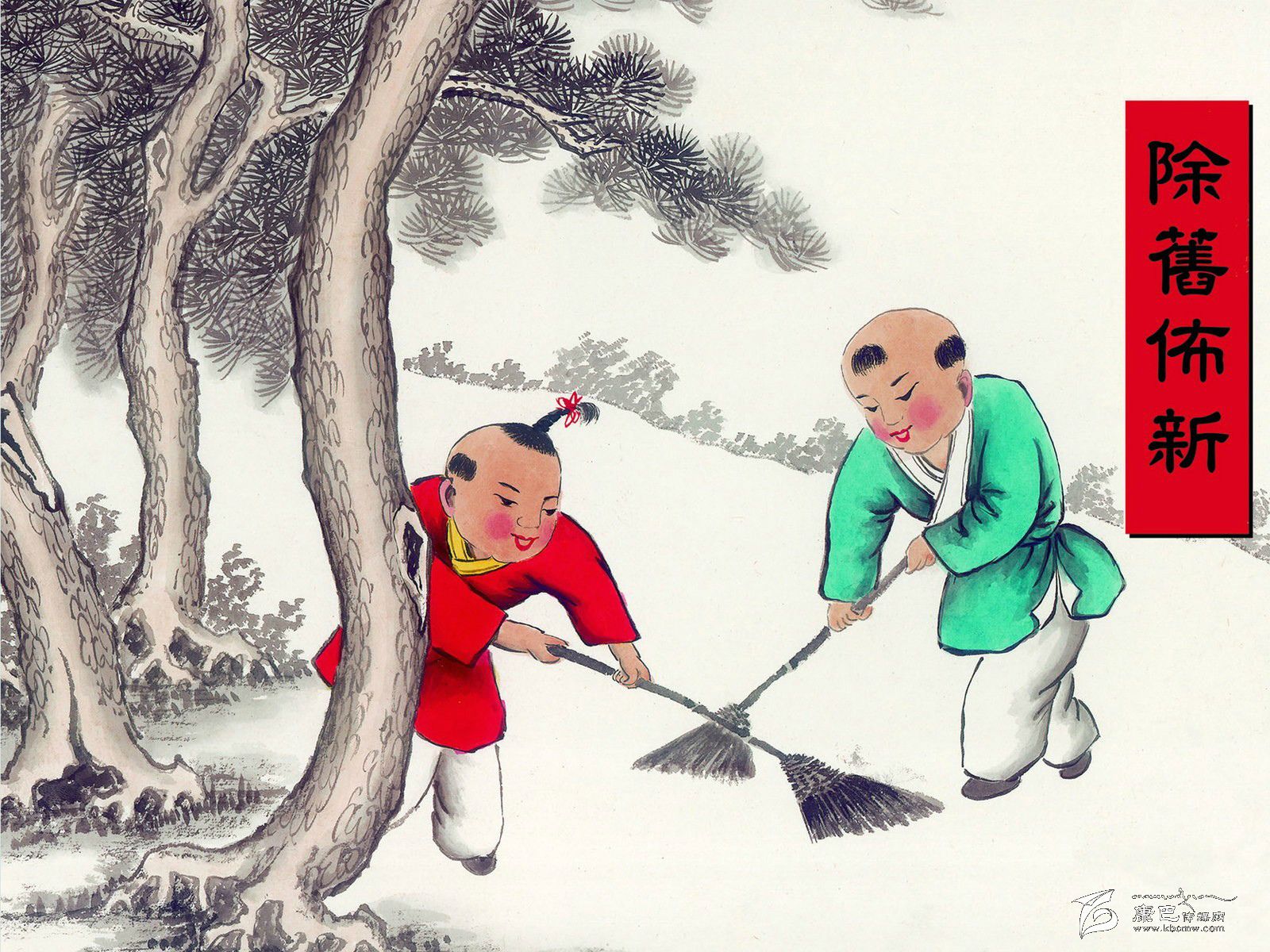 “臘月二十四,撣塵掃房子”的風(fēng)俗,由來已久。據(jù)《呂氏春秋》記載,我國在堯舜時(shí)代就有春節(jié)掃塵的風(fēng)俗。按民間的說法:因“塵”與“陳”諧音,新春掃塵有“除陳布新”的涵義,其用意是要把一切“窮運(yùn)”、“晦氣” 統(tǒng)統(tǒng)掃出門。這一習(xí)俗寄托著人們破舊立新的愿望和辭舊迎新的祈求。