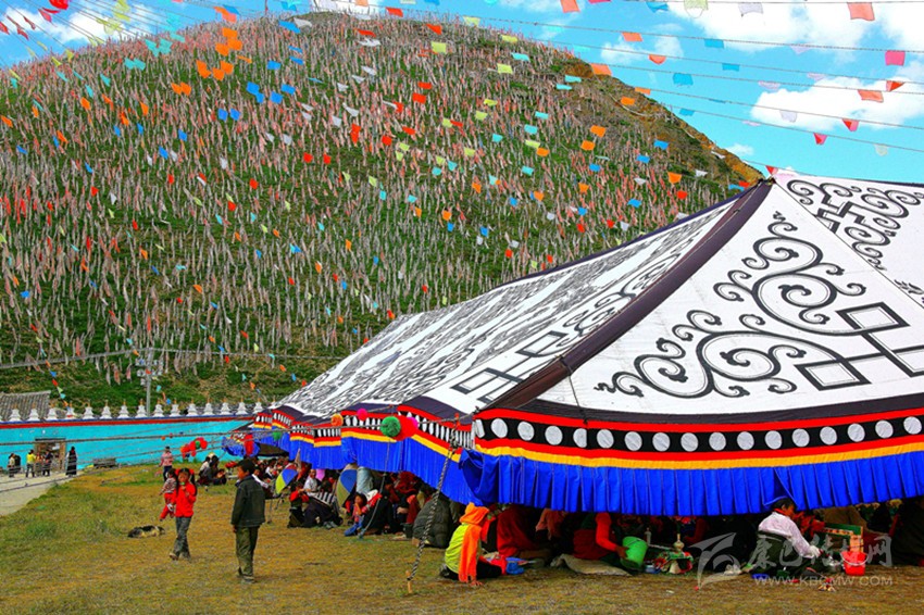 說來湊巧,眼前這個“和平法會法事供養(yǎng)處”,一問竟正是竹噶活佛設(shè)在這里的法物流通處。中年尼姑叫叢翁巴姆,能講一口流利的漢語,在覺姆寺出家十五年,三個月前被派到這里服務(wù)。交談中,我忽然想起布姆曲曾說她的一個姨媽在覺姆寺出家,便問叢翁巴姆,她是否認識一個叫翁青的人?叢翁巴姆答,覺姆寺有四個叫翁青的尼姑,不知我問的是哪一個。我告訴她是道孚縣各卡鄉(xiāng)人氏。叢翁巴姆一聽大喜,原來她們是同鄉(xiāng),彼此很熟悉。她曾從翁青口中聽說一個漢人在資助她的侄女讀書,不想今日有緣在雅江相見!