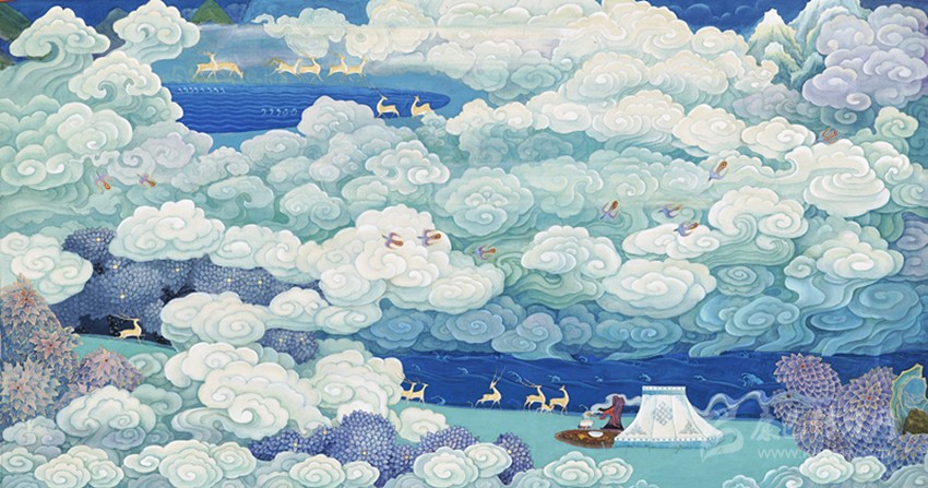 云中鹿鳴。益西澤仁 畫(huà)作