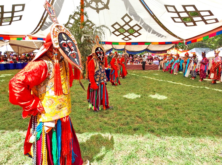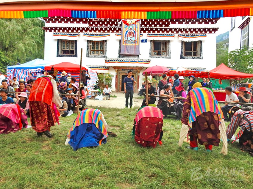 初次看到巴塘藏戲是康巴衛(wèi)視藏歷春晚,原以為是寺廟舞蹈,在唱聲杳杳里類似川劇的喉腔讓我覺得新奇,于是找些資料看看了巴塘藏戲介紹。藏戲的開山鼻祖唐東杰布。藏民歷來把他看作是創(chuàng)造藏戲的戲神和修建橋梁的鐵木工匠的“祖師”,是藏族人民心目中智慧、力量的化身。他將佛教經典中的傳記同民間傳說、神話故事等內容融在一起,創(chuàng)作出一種具有人物性格和舞蹈、唱腔相結合的表演藝術,使過去單一的跳神舞逐漸地戲劇化,表現(xiàn)手段也不斷加強,并從宗教儀式中分離出來,形成了藏劇藝術的雛形。