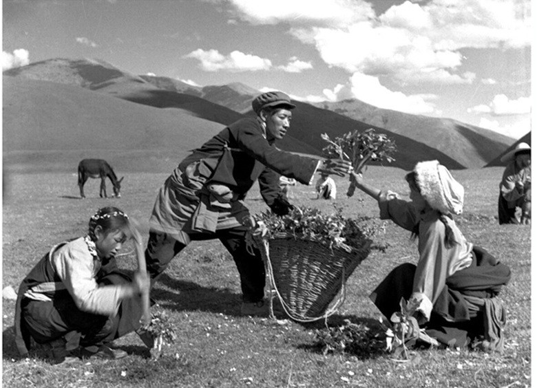 色達縣達則公社的獸醫(yī)正在采集擦藥。(拍攝于1976年5月)