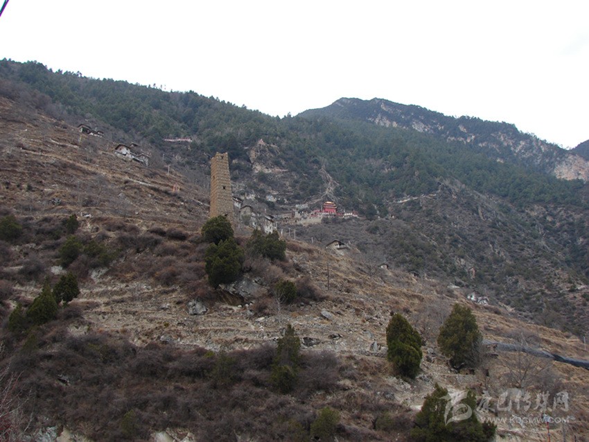 半山腰處,有三座高約三十余米的碉樓,因?yàn)榻ㄔ谏桨希@得更加的高大。古碉的外墻上,墻筋外露,層層疊疊,非常的美觀。在丹巴,人們習(xí)慣將這種墻筋外露的碉樓稱為母碉,而墻筋不外顯的則稱為公碉。這種母碉在丹巴的其它村落也可以尋覓到它的蹤影,不過(guò)如此密集修建在一起還不多見。