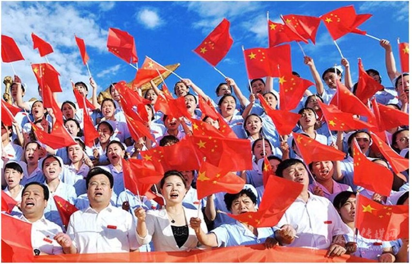 56個(gè)民族唱響紅歌。五星紅旗,你和太陽(yáng)一同升起,升起一個(gè)令世界矚目的高度。14億人民,56個(gè)民族殷殷的祝福,匯入載歌載舞的歡騰,所有的中華兒女喜上眉梢,喜也燦爛!