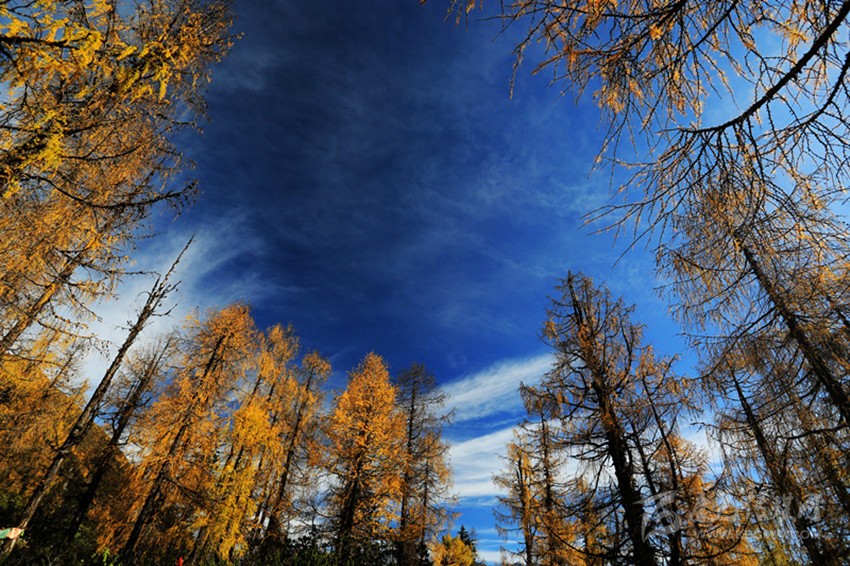 在這里,樹木、山峰、湖泊是如此的層次分明,一層一層的樹木有綠色、黃色、紅色,不同的色彩相互映襯,層林盡染,金碧輝煌,在連綿的群山之間頑強地生長著,吸允天地之精華,與山水為伴,與日月同輝。