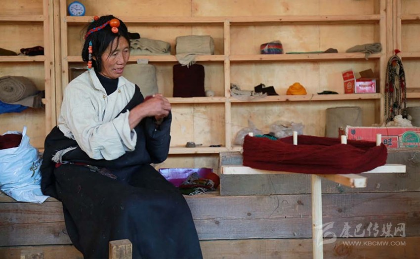 “庫”,這層細(xì)軟的底絨被表層粗糙的牦牛毛所覆蓋,且本身細(xì)長彎曲,無法用剪刀方便地剪下,故而只能手工采集。從每年春天采集牦牛、羊絨,到捻成線,到染成不同顏色,再到織成一匹布,整個過程全由扎西巴姆和她帶領(lǐng)的幾個藏族婦女手工完成,全部學(xué)會這門技術(shù)需要3—4年,現(xiàn)在麥宿只有4人全部掌握。但與這費(fèi)力耗時的工藝形成殘酷對照的是,手工織物在機(jī)器快速生產(chǎn)的現(xiàn)代社會,市場經(jīng)營可謂舉步維艱。雖然工巧明系創(chuàng)立的平臺專門收購編織班做出來的產(chǎn)品,但購買的人并不多,編織班創(chuàng)建至今,所得收益只夠勉強(qiáng)維持平衡。
