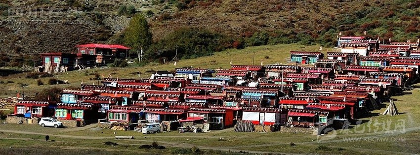 藏式房多平頂,可以說是環(huán)境的產(chǎn)物。高原干旱少雨,無須飛檐高頂,冬有積雪,便于打掃;最重要的是風(fēng)沙大而頻繁,高屋難耐勁風(fēng)。此外,平頂民房還有一個(gè)精神功能就是作為信仰的場(chǎng)所。房頂供奉有神靈的祭壇,有煨桑的香爐,更有家家必插的五色經(jīng)幡,有的房頂平臺(tái)的圖符裝飾極為精美,把最古老的建筑樣式和最現(xiàn)代的建筑格調(diào)融為一體。另一個(gè)共同特點(diǎn)便是,一般講究一些的農(nóng)村都把房子的夯土外壁刷成暗含深意的純白。這自然是典型的藏式院落了。而不太講究的半農(nóng)半牧區(qū)則保持原色。白色房屋上部突出棕色材料的房檐,或漆成棕紅的裝飾帶,既勾勒出輪廓,又平添了幾多美觀。白色建筑在藏語中有個(gè)非常詩(shī)意的名字,叫“點(diǎn)點(diǎn)繁星”。