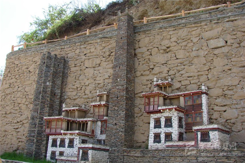 宋達(dá)村活動(dòng)場(chǎng)所是一個(gè)寬約二十米,長(zhǎng)約三十米的大壩,里面是高約十米的石砌圍墻,此時(shí)幾個(gè)工人正在忙碌著,幾座建筑模型已初見(jiàn)成形,最左邊是一座十三角碉的模型,一名工人坐在碉樓的樓頂上拿著手錘正奮力的敲打著眼前的石片,那石雕一半露在墻外,還有一半巧妙的鑲嵌在圍墻里。筆者走上前去,來(lái)到“碉樓”下,整座碉樓都是用灰色的石片砌成,每個(gè)石片間距一致,幾乎不見(jiàn)一點(diǎn)縫隙,充分展示了嘉絨人民高超的石砌技藝。十三角碉,顧名思義,就是整座碉樓由十三個(gè)角組成,在古時(shí)候是展示財(cái)富和地位的一種表現(xiàn)形式,砌墻的師傅非常健談,他告訴我,在嘉絨地區(qū),碉樓又以十三角碉最為罕見(jiàn),據(jù)說(shuō),如今殘存的十三角碉全世界都只有三座,而其中保護(hù)得最為完整的尤數(shù)梭坡鄉(xiāng)普格頂村了,他頓了頓,伸出布滿(mǎn)青筋沾滿(mǎn)灰塵的手,往上指了指,自豪的說(shuō),它就在我們宋達(dá)村的山巔上,我不禁肅然起敬,為家鄉(xiāng)擁有這樣一座凝聚著嘉絨人民智慧結(jié)晶的古碉而激動(dòng)不已。在十三角碉旁,是一座典型的嘉絨藏房模型,共有五層,第一層為關(guān)牛羊的畜圈,石砌匠人巧妙的將一樓門(mén)洞和排水口合二為一,即增加了美感,也增加了科學(xué)性。第二層樓房有兩扇窗戶(hù),是人們飲食起居的重要場(chǎng)所。第三層樓房上有三扇窗戶(hù),是儲(chǔ)藏糧食、臘肉的地方。每一扇窗按照比例縮小制成,當(dāng)筆者問(wèn)匠人為什么嘉絨藏房的門(mén)窗都如此矮小時(shí),他對(duì)此也娓娓道來(lái)。他告訴我,古時(shí)候嘉絨大地上混沌莫開(kāi)、妖魔橫行,人們每天都在膽戰(zhàn)心驚中度過(guò),那時(shí)候的房屋窗戶(hù)、門(mén)都修得異常的高大,夜幕降臨時(shí),這些妖魔就從窗戶(hù)、門(mén)洞里爬進(jìn)來(lái),將熟睡的人擄走,后來(lái)嘉絨女王要求屬民們將窗戶(hù)和門(mén)洞改小,后來(lái)人們一直將此修建之法一直延續(xù)至今。第四層上是用木板、木頭作成的回廊,紅白相間,煞是美觀。第五層是堆放雜物的場(chǎng)所,石墻的每個(gè)角上都有石砌的尖角,如牛角一樣直指蒼穹,在尖角之間,有煨桑祈福的佛塔。再往右邊是一座四角碉的模型,由于只有四角,因此在修建中速度比十三角碉快了許多,那棱角愈發(fā)的鋒利。在嘉絨藏區(qū),這種碉樓是最常見(jiàn)的碉樓之一,碉樓藏語(yǔ)中稱(chēng)為“邛籠”。早在2000年前《后漢書(shū)'西南夷傳》就有羌族人“依山居止,壘石為屋,高者至十余丈”的記載。碉樓多建于村寨住房旁,高度在10至30米之間,用以御敵和貯存糧食柴草。碉樓有四角、六角、八角幾形式。碉樓一般建于沿河谷高山或半坡有耕地和水源的地方,結(jié)合地形,利用有限的平臺(tái),利用石頭筑成平頂。一般分成二層或三層,上層堆放糧食,中層住人,下層圈養(yǎng)牲畜,高二三丈,稱(chēng)為邛籠;高的可有十三層,達(dá)十余丈,稱(chēng)為碉。碉樓由專(zhuān)門(mén)的砌石匠修建,原料為亂石,用泥土粘合,不吊線,不繪圖,全憑經(jīng)驗(yàn),信手砌成。其壁面能達(dá)到光滑平整,不留縫隙,其堅(jiān)固程度則可在川西這個(gè)地震多發(fā)區(qū)聳立數(shù)十年甚至數(shù)百年,經(jīng)歷數(shù)次地震仍然巍然屹立,有的已偏倚卻不倒,有的彎曲為弓,自成風(fēng)景。它按照功能分為戰(zhàn)碉、家碉、寨碉等。再往右邊走,是一座低矮的樓房,它也是嘉絨藏區(qū)最為常見(jiàn)的藏房之一,雖然低矮,然而其中的雕樓畫(huà)棟美不勝收。據(jù)縣農(nóng)辦負(fù)責(zé)人介紹,宋達(dá)村地處普格頂山腳下,省道線從門(mén)前經(jīng)過(guò),山頂山有著為名遐邇的十三角碉,民風(fēng)純樸,因此該村要突出物質(zhì)文化引領(lǐng)經(jīng)濟(jì)建設(shè)的發(fā)展,為此打造碉樓文化及藏族民居文化,吸引大批游客走進(jìn)村莊里,鼓勵(lì)村民自己建造有著嘉絨風(fēng)味的藏族民居,實(shí)現(xiàn)生產(chǎn)發(fā)展,這是新農(nóng)村建設(shè)的中心環(huán)節(jié),是實(shí)現(xiàn)其他目標(biāo)的物質(zhì)基礎(chǔ),也是我們打造宋達(dá)村新農(nóng)村建設(shè)所思考的問(wèn)題,我們也逐步在實(shí)現(xiàn)這目標(biāo)。