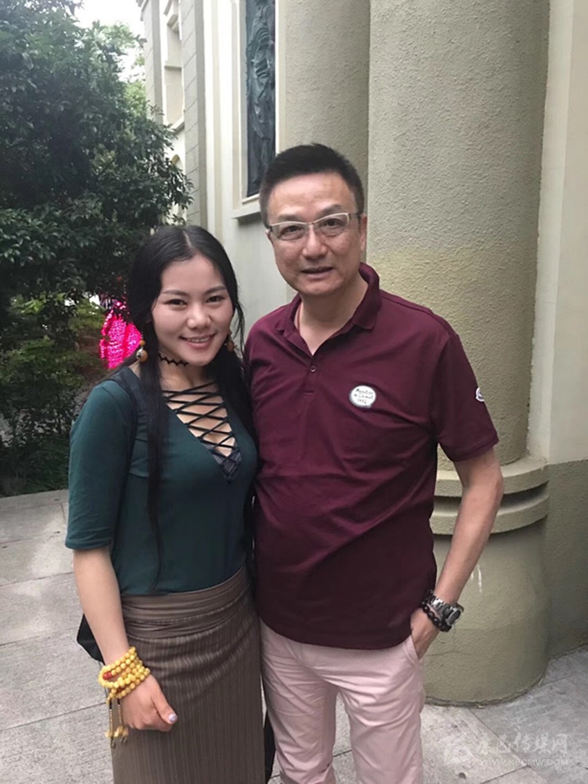 其美與國際華語音樂聯(lián)盟主席向雪懷合影。