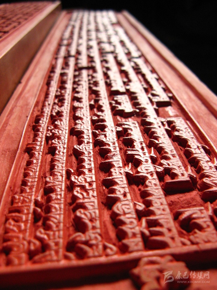 公元1730年2月3日,正式在倫珠頂開始進行校對和雕刻工作。為了提高印版的質量,土司規(guī)定實行三級審校制度,即書法家們負責對寫好的版文進行兩校,以便及時修改錯漏。然后經編審師們復審和終審后,方可交刻工雕刻??掏旰螅帉弾焸冊谇鍢由线€要進行三校。版面改動較多的進行重刻,改動較少的進行補刻。規(guī)定的校次不準任意減少或改動。雕刻工作由噶瑪班珠和次白總負責。經過60多名書寫員、10名編審師、400余名刻工以及100多名雜工的艱苦勞動,浩繁的《甘珠爾》刻版工程于在公元1734年完成。印版所用經費,折成茶塊共計7622包(每包約20公斤)。