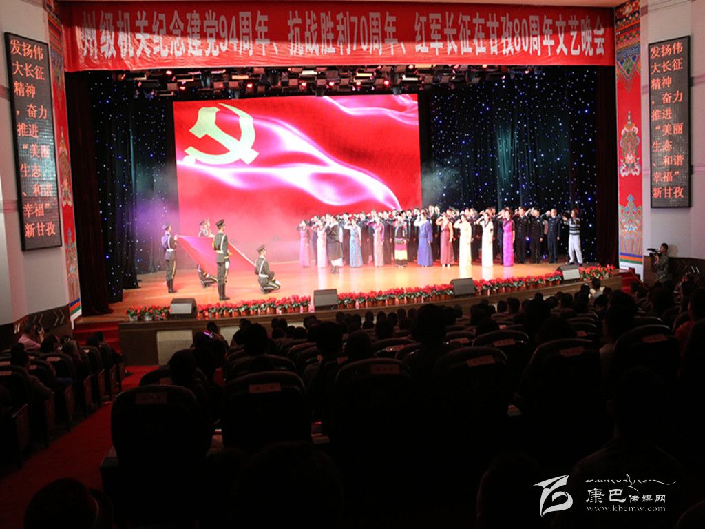 本網(wǎng)訊(記者 宋志勇 文/圖)6月30日晚,由州直屬機關(guān)工委和州民族干部學(xué)校聯(lián)合主辦的州級機關(guān)紀(jì)念建黨94周年、抗戰(zhàn)勝利70周年、紅軍長征在甘孜80周年文藝晚會在康定劇場演出。州領(lǐng)導(dǎo)李康、相洛、白蘇英、何飚、周冬秀、蔣秀英、孫飛以及甘孜軍分區(qū)領(lǐng)導(dǎo)等觀看了演出。