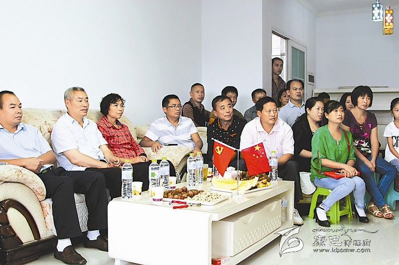 何曉莉的父親(左一)、母親(左二)和親戚好友們集聚一堂,通過電視看女兒駕機(jī)飛過天安門。