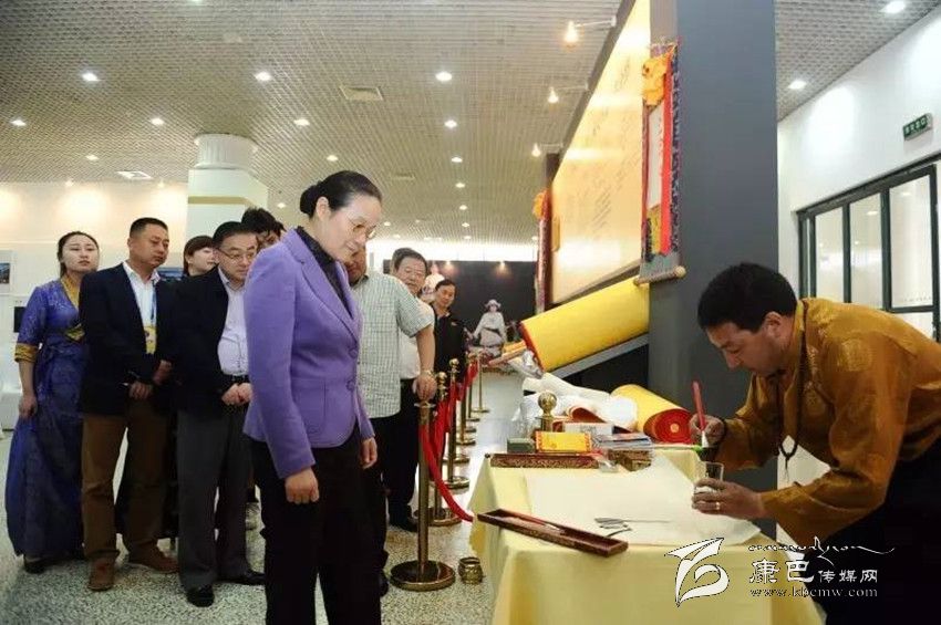 在展覽中心,趙雯在州政府副州長葛寧等的陪同下,觀看了甘孜旅游宣傳片,參觀了甘孜旅游圖片展、藏傳佛教宮廷精品文物展、“藏藝通”旅游商品展和藏文書法展,仔細聽取講解介紹,對甘孜州舉辦此次活動給予了充分肯定。趙雯還興致勃勃地觀看了四川省級藏文書法傳承人、著名的藏文書法家巴松鄧珠現(xiàn)場藏文書法表演,品嘗了甘孜州康定藍逸高原食品有限公司的高原特色產品。