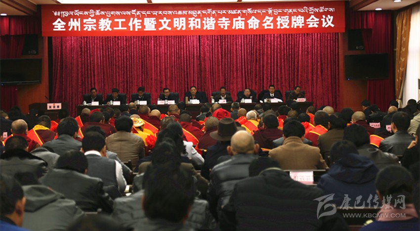 本網(wǎng)訊(記者 楊杰 文/圖)3月28日,全州宗教工作暨文明和諧寺廟命名授牌會(huì)議在康定召開。會(huì)議深入學(xué)習(xí)貫徹全國(guó)、全省宗教工作會(huì)議精神,深化對(duì)做好新形勢(shì)下宗教工作重大意義的認(rèn)識(shí),總結(jié)經(jīng)驗(yàn)、查找不足、部署工作,提升全州宗教事務(wù)依法管理水平,引導(dǎo)宗教與社會(huì)主義社會(huì)相適應(yīng)。會(huì)議對(duì)2016年達(dá)標(biāo)升級(jí)的文明和諧寺廟進(jìn)行了命名授牌。州委書記劉成鳴出席會(huì)議并講話,州政協(xié)主席向秋出席會(huì)議。