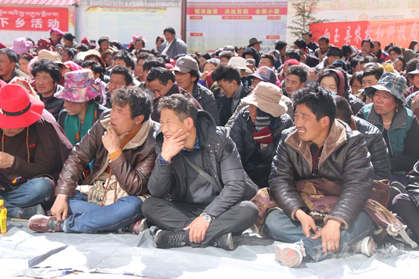 宣講中,宣講員們一會(huì)兒用藏語(yǔ)一會(huì)兒用漢語(yǔ),一會(huì)兒講故事一會(huì)兒舉例子,一會(huì)兒逗趣說(shuō)笑一會(huì)兒拍案而起,將省、州、縣的方針政策和國(guó)家法律、法規(guī)與當(dāng)?shù)厝罕姷膶?shí)際生活聯(lián)系起來(lái),講得生動(dòng)形象;“現(xiàn)在政策這么好,自己不努力,以后人家都脫貧了你就只有看到。”“勤洗手,勤洗澡,健康生活少不了?!薄耙粋€(gè)人長(zhǎng)得再漂亮,住的房子不干凈,穿的衣服不干凈,還有一身壞習(xí)慣,也沒得哪個(gè)喜歡她嘛?!薄瓬\顯通俗又包含道理的句子更是層出不窮?,F(xiàn)場(chǎng)時(shí)而笑聲朗朗、掌聲雷動(dòng),時(shí)而氣氛肅穆、鴉雀無(wú)聲。臺(tái)上,講的是激情四射、手舞足蹈;臺(tái)下,聽的是忘乎所以、目瞪口呆。長(zhǎng)達(dá)3個(gè)小時(shí)的宣講,現(xiàn)場(chǎng)秩序井然。