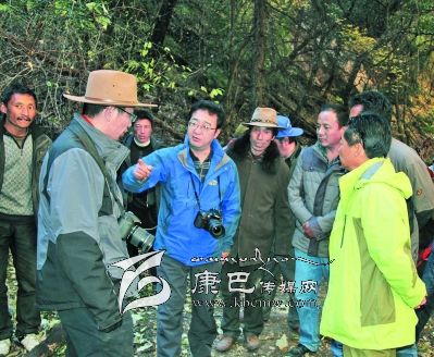 10日早上8點30分,益西達瓦又率隊騎馬從卡斯村進入卡斯谷。一進谷口,大家就被谷口小巧別致的巖溶鈣化彩池、千年古樹沖天柏所震撼。據(jù)說谷口沿線還有古冰川的遺跡,是雪峰、冰川、海子、瀑布、溫泉的共融體,國家二類保護植物干香柏,藥用植物蟲草、貝母、黃芪、大黃等也非常豐富。面對谷內(nèi)五彩繽紛的山色、野性激蕩的溪流、挺拔粗壯的古樹、枝椏橫溢的叢林、結(jié)實樸拙的木橋、壁立千仞的懸崖,考察隊員不禁驚呼:“這不就是阿凡達的故鄉(xiāng)嗎?”益西達瓦時而騎馬,時而步行,一邊察看景致,一邊興高采烈的與同行考察隊員和縣鄉(xiāng)村干部交談。景區(qū)怎樣規(guī)劃?怎樣建設(shè)?怎樣宣傳?景區(qū)取什么名字?為景區(qū)賦予什么樣的文化靈魂?哪里修棧道?哪里架索道?哪里修觀光電梯?都一一指導(dǎo),清晰地勾畫了卡斯谷開發(fā)藍圖。