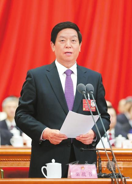 習(xí)近平張德江俞正聲張高麗汪洋王滬寧趙樂際韓正等在主席臺就座 李克強作政府工作報告 栗戰(zhàn)書主持大會 聽取關(guān)于憲法修正案草案的說明