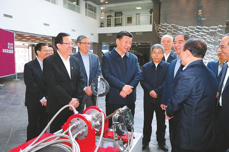 近年來,北京大學(xué)培養(yǎng)和匯聚了一批具有世界領(lǐng)先水平的科學(xué)家、科技領(lǐng)軍人才和創(chuàng)新團隊,科研綜合實力、原始創(chuàng)新能力顯著增強。在金光生命科學(xué)大樓一層大廳,展示了近年來北京大學(xué)在理科、工科、醫(yī)科等領(lǐng)域的科研成果。習近平認真聽取關(guān)于學(xué)校學(xué)科建設(shè)、人才隊伍建設(shè)、科研創(chuàng)新能力提升等情況介紹,并仔細察看新一代干細胞技術(shù)、碳芯片技術(shù)、微型雙光子顯微成像系統(tǒng)等科研裝置和實物模型。習近平對大家說,看了你們的成果展示,我為你們感到驕傲。創(chuàng)新是引領(lǐng)發(fā)展的第一動力,是國家綜合國力和核心競爭力的最關(guān)鍵因素。重大科技創(chuàng)新成果是國之重器、國之利器,必須牢牢掌握在自己手上,必須依靠自力更生、自主創(chuàng)新。在這個問題上,我們一定要保持清醒。要繼續(xù)深化科技體制改革,把人、財、物更多向科技創(chuàng)新一線傾斜,努力在關(guān)鍵共性技術(shù)、前沿引領(lǐng)技術(shù)、現(xiàn)代工程技術(shù)、顛覆性技術(shù)創(chuàng)新上取得更大突破,搶占科技創(chuàng)新制高點。高校是科技創(chuàng)新體系的重要組成部分,高??蒲腥藛T是我國科技創(chuàng)新的重要隊伍。要加強學(xué)科之間的協(xié)同創(chuàng)新,加強對交叉學(xué)科群和科技攻關(guān)團隊的支持,培養(yǎng)造就更多具有國際水平的科技人才和創(chuàng)新團隊。