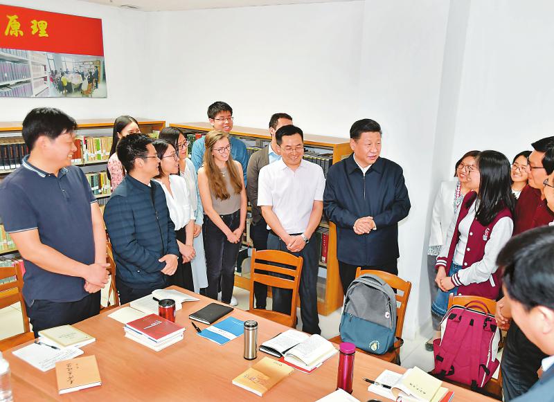 5月2日,中共中央總書記、國家主席、中央軍委主席習近平來到北京大學(xué)考察。這是習近平在北京大學(xué)馬克思主義學(xué)院,與正在就“解讀新時代”進行座談交流的中外學(xué)生親切交談。 新華社記者 李濤 攝