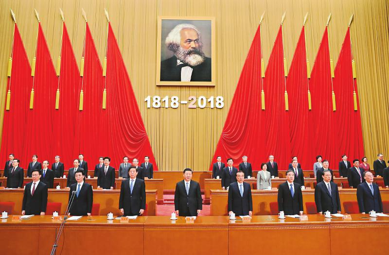 5月4日,紀(jì)念馬克思誕辰200周年大會(huì)在北京人民大會(huì)堂隆重舉行。習(xí)近平、李克強(qiáng)、栗戰(zhàn)書、汪洋、王滬寧、趙樂際、韓正、王岐山等出席大會(huì)。 新華社記者 鞠鵬攝