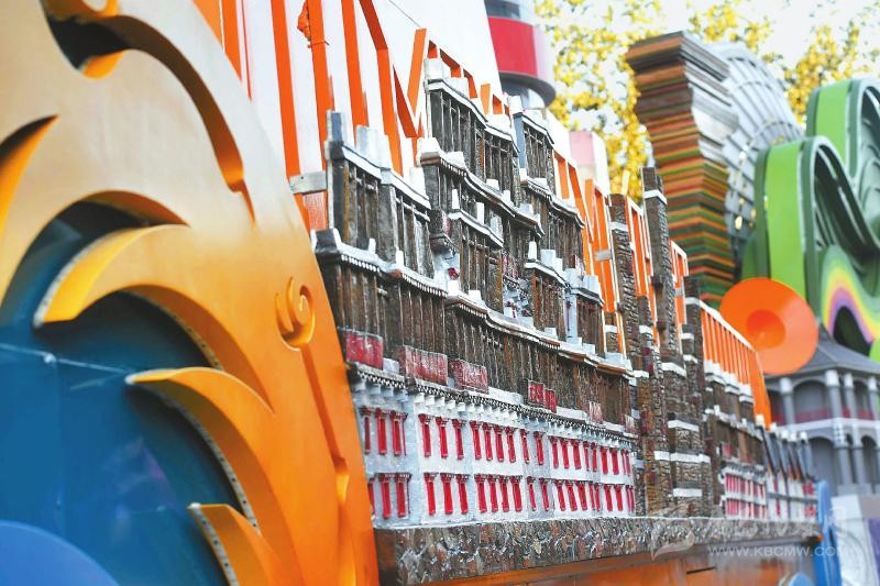 彩車上的汶川地震災(zāi)后重建的藏羌彝漢天府新民居浮雕。川報記者肖雨楊攝