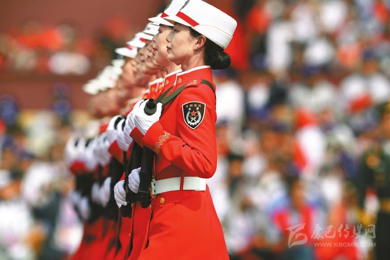 嘹亮的口令,莊嚴(yán)的軍禮,威武的正步,從將軍到士兵,行進(jìn)在受閱區(qū)的官兵以整齊劃一的行動(dòng)表達(dá)對(duì)黨的核心、軍隊(duì)統(tǒng)帥的衷心追隨。
