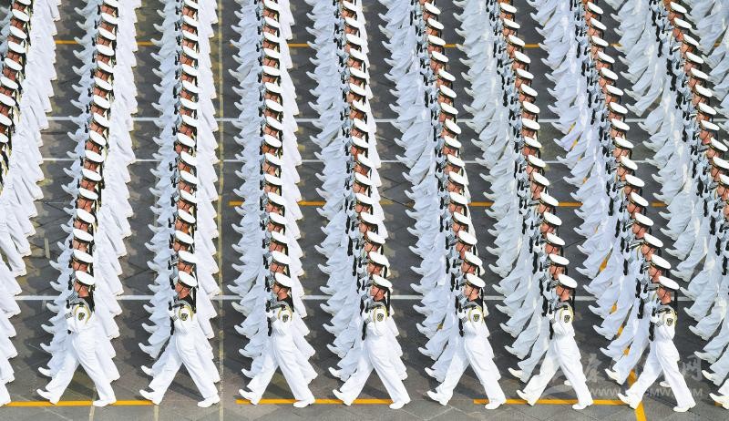 行進(jìn)中的海軍方隊(duì)。新華社記者岳月偉攝