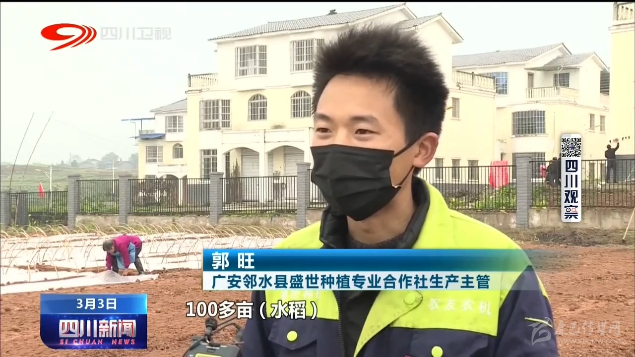 廣安市鄰水縣盛世種植專業(yè)合作社生產(chǎn)主管 郭旺: 我們今年預(yù)計(播種)100多畝水稻,現(xiàn)在已完成30%左右,剩余的估計在3月10號左右完成。