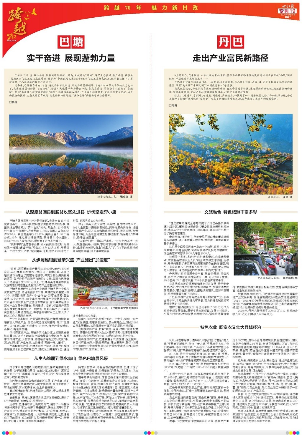 今天,四川省委機關(guān)報——四川日報,推出12個整版的特別報道“跨越70年 魅力新甘孜”,圖文并茂,濃墨重彩地展現(xiàn)甘孜州70年砥礪奮進的光輝歲月。