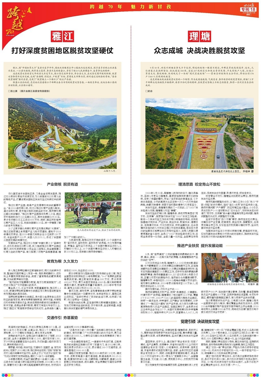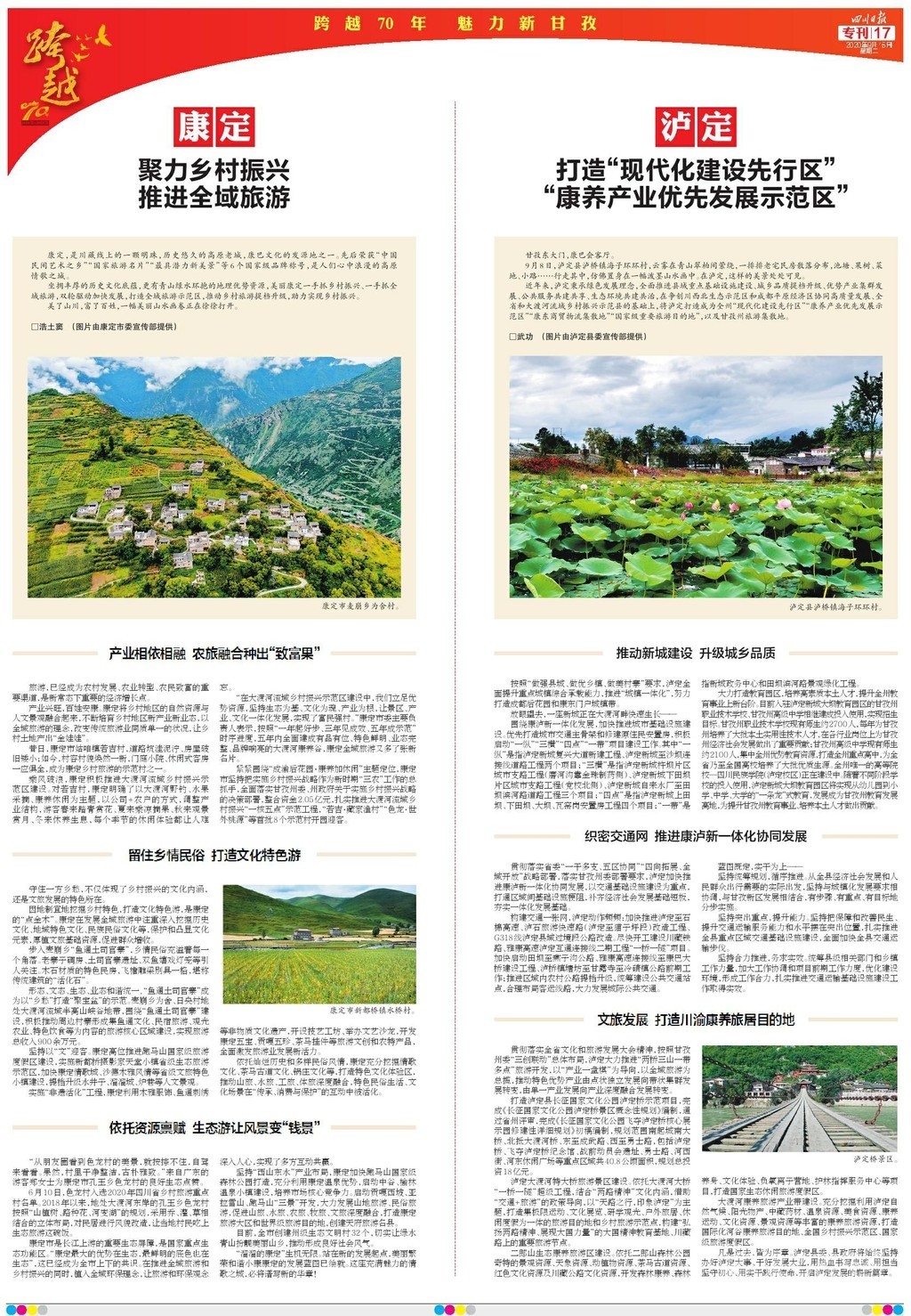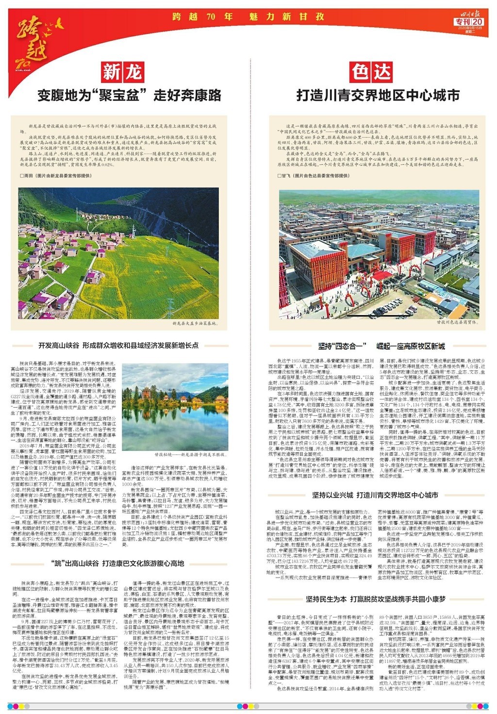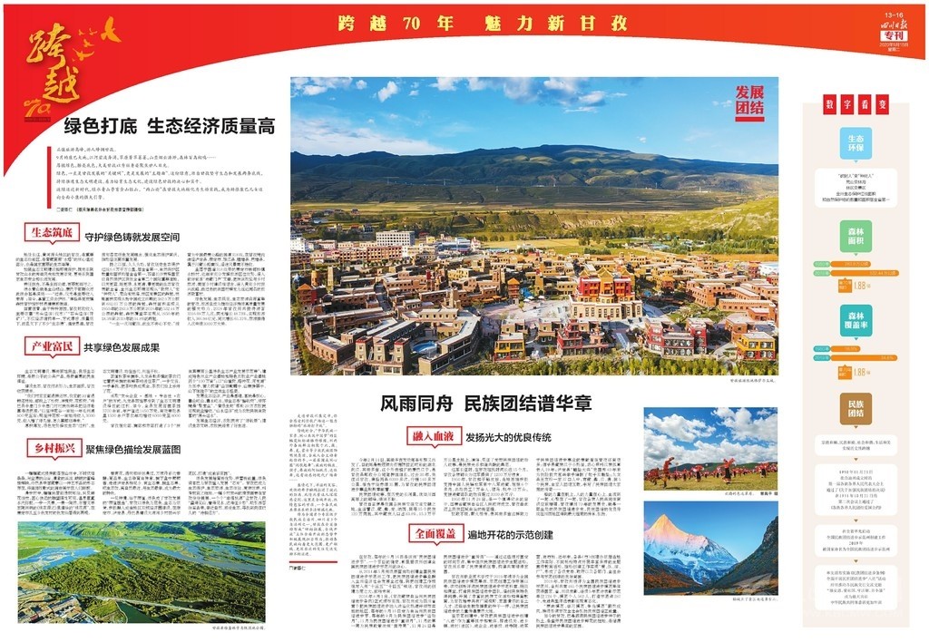 為慶祝甘孜建州70周年,《四川日報》于9月15日推出八連版特別報道,整體以紅色打底,充滿喜慶的祝福。