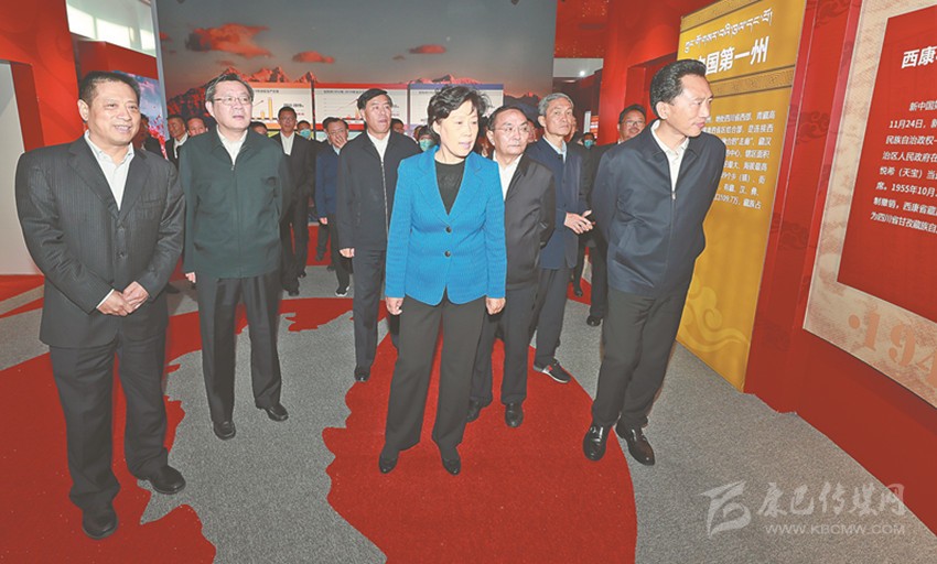 從和平解放到建立新生政權,從封閉落后到暢通高原,從平息武裝叛亂,開展“四反運動”到民主改革全面完成,從“穩(wěn)藏必先安康” 到“安康必先通康”,從脫貧攻堅到攻克“三區(qū)三州”貧困堡壘,從溫飽不足到決勝全面小康,從發(fā)展滯后到繁榮興盛,從一窮二白到暢通甘孜、美麗甘孜、和諧甘孜、小康甘孜即將建成。走進一個個展區(qū),田向利、郭衛(wèi)平等領導同志站在一幅幅反映甘孜70年來滄桑巨變的珍貴圖片前,留連駐足,認真聽取工作人員的講解,并不時交流討論,對甘孜大地70年來經濟社會所取得的新成就、新變化深感振奮、贊不絕口。