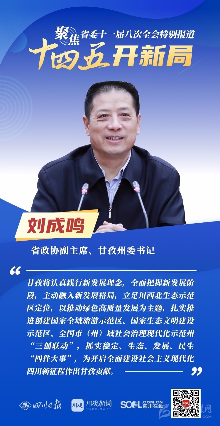 12月3日,中共四川省委十一屆八次全會(huì)在成都開幕,全會(huì)將深入學(xué)習(xí)貫徹黨的十九屆五中全會(huì)精神,審議《中共四川省委關(guān)于制定四川省國(guó)民經(jīng)濟(jì)和社會(huì)發(fā)展第十四個(gè)五年規(guī)劃和二〇三五年遠(yuǎn)景目標(biāo)的建議(討論稿)》,為未來(lái)5年乃至更長(zhǎng)時(shí)期四川發(fā)展謀劃新藍(lán)圖 。