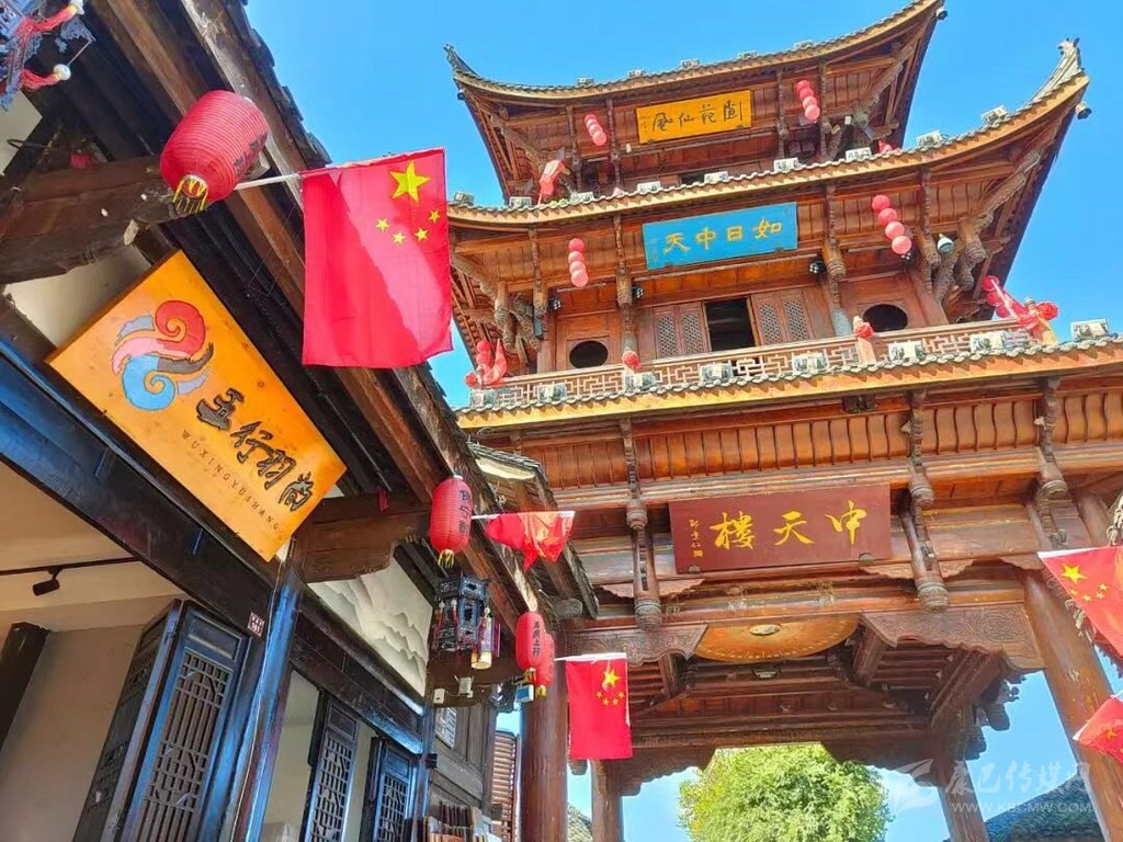 在南充古城閬中,以中天樓為核心鋪開的四條街道,全部被五星紅旗裝點開來,甚至部分街段上空鋪上了“紅旗海”。新城的主干道,也掛上了一面面五星紅旗,站在街頭放眼望去,鮮艷的五星紅旗成為一道最靚麗的風景線。