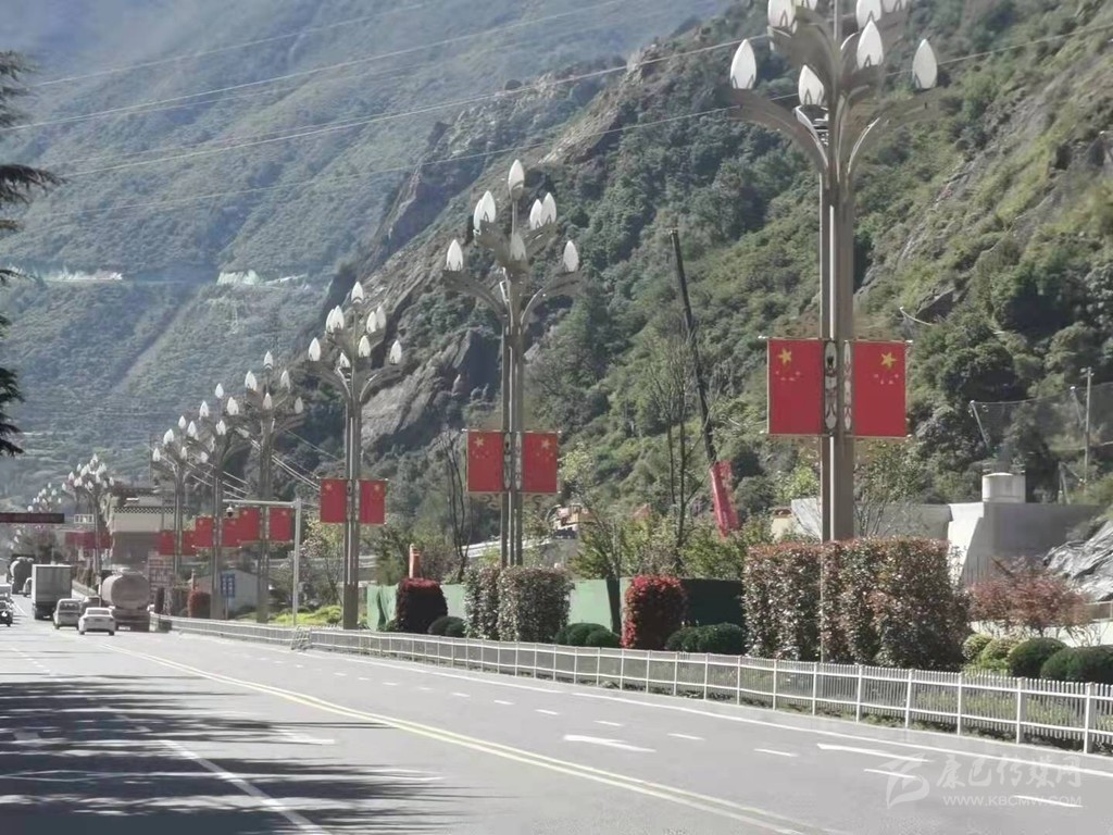 在樂山市,為營造喜慶、熱烈、歡樂、祥和的節(jié)日氛圍,中心城區(qū)嘉定路、柏楊路等多條主干道,以及樂山岷江一橋和二橋共計1217柱燈桿上,懸掛了2000多面國旗,換上“紅裝”后的街道,在藍天的映襯下顯得格外美麗。
