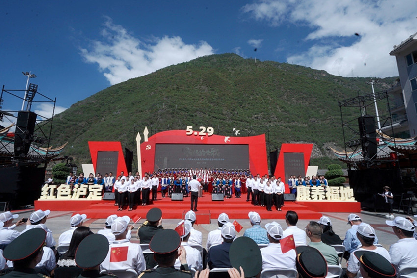 跨越時空“唱和”不朽的世紀(jì)贊歌,沉浸式禮贊澎湃的紅色記憶。5月29日,備受期待的瀘定縣“5·29”群眾文化惠民活動暨大型合唱展演在瀘定橋廣場舉行。來自縣級各系統(tǒng)各鄉(xiāng)鎮(zhèn)的14支合唱代表隊1500余名黨員干部、群眾登臺獻(xiàn)唱,唱響紀(jì)念紅軍飛奪瀘定橋勝利88周年的新時代“永恒贊歌”,一幅“聲”情告白黨和國家的音樂長卷在瀘定橋邊徐徐鋪展,8萬兒女用堅定的歷史自覺和文化自信抒發(fā)愛黨愛國愛“紅色瀘定·康養(yǎng)福地”的款款深情。