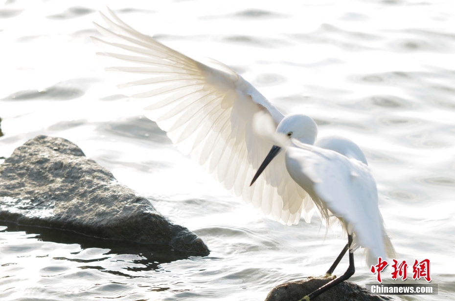 深圳海濱生態(tài)公園的白鷺展翅。中新社記者 陳文 攝