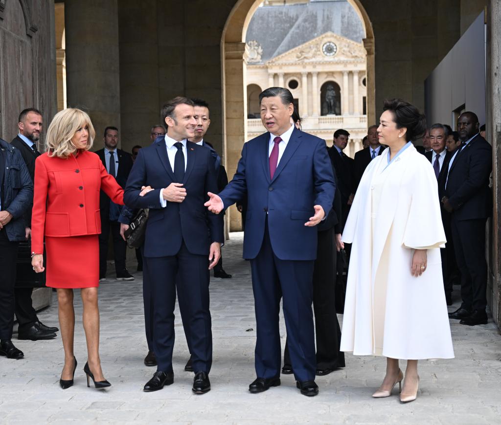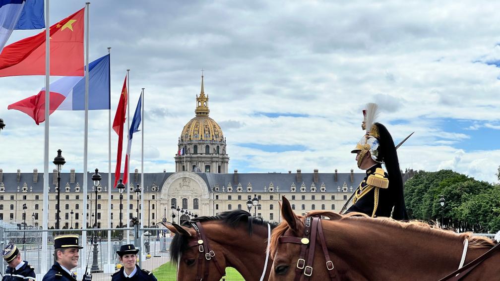 ??五月的巴黎,風(fēng)和景明。塞納河畔,榮軍院金色穹頂熠熠生輝,五星紅旗和藍(lán)白紅三色旗迎風(fēng)飄揚。