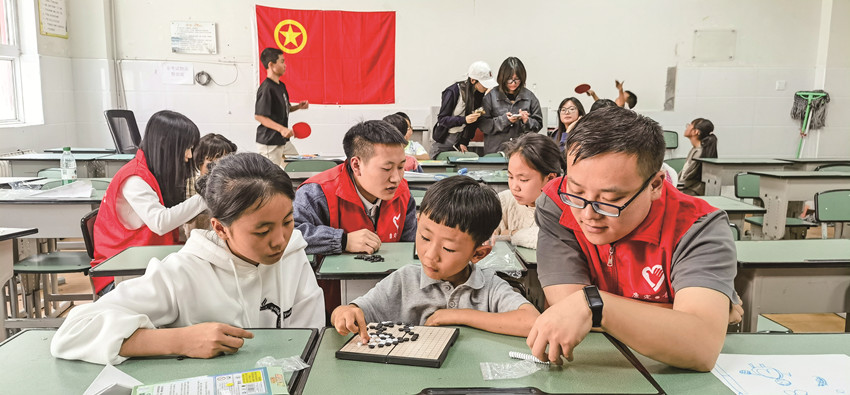青年志愿者陪伴康定姑咱“8·03”特大山洪泥石流災(zāi)害受災(zāi)兒童。