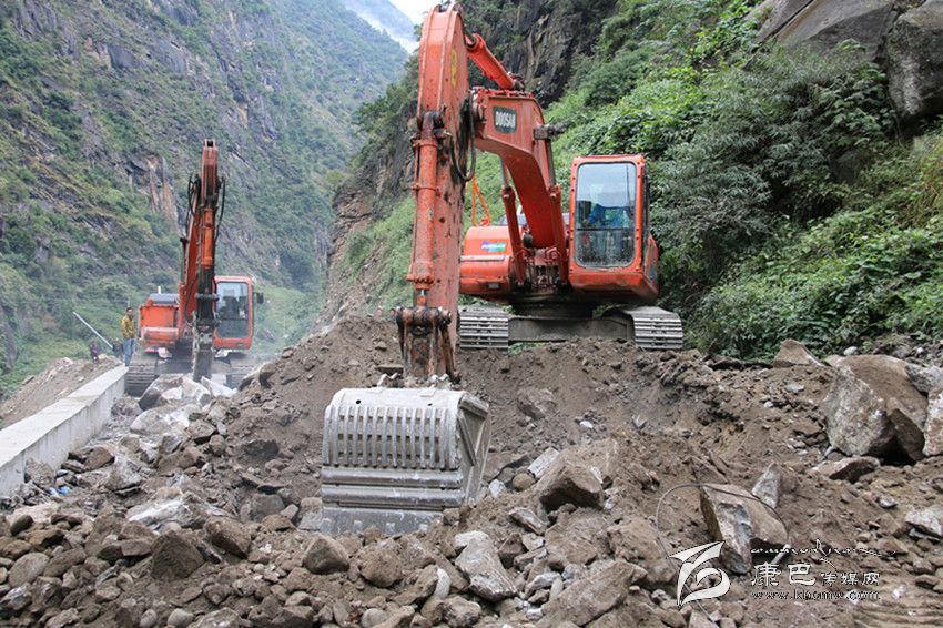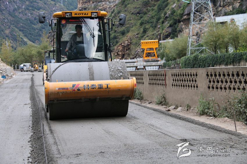 10月23日,在省道215線九龍縣城至小金鄉(xiāng)雅礱江口段(九江路)多個施工現(xiàn)場,大型機械隆隆作響,大卡車傾卸砂石,推平機將砂石推平,碾路機來回碾壓,工人正忙著改造公路,工地一片忙碌場景。